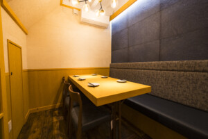 お寿司はこだわりの自家製ブレンド米を使い赤酢で味付け。恵比寿で予約が取らないお店の大将に監修してもらった赤酢はやみつき。お魚も豊洲から直で仕入れているので新鮮。お茶と水にもこだわり、お茶は全て茶葉から店舗で落としており香り高いお茶をご提供。おでんもπウォータで作っているので出汁の出方が違く風味の高いダシで提供します。完全個室もあるので接待やデートに使いやすい空間をご用意しています。